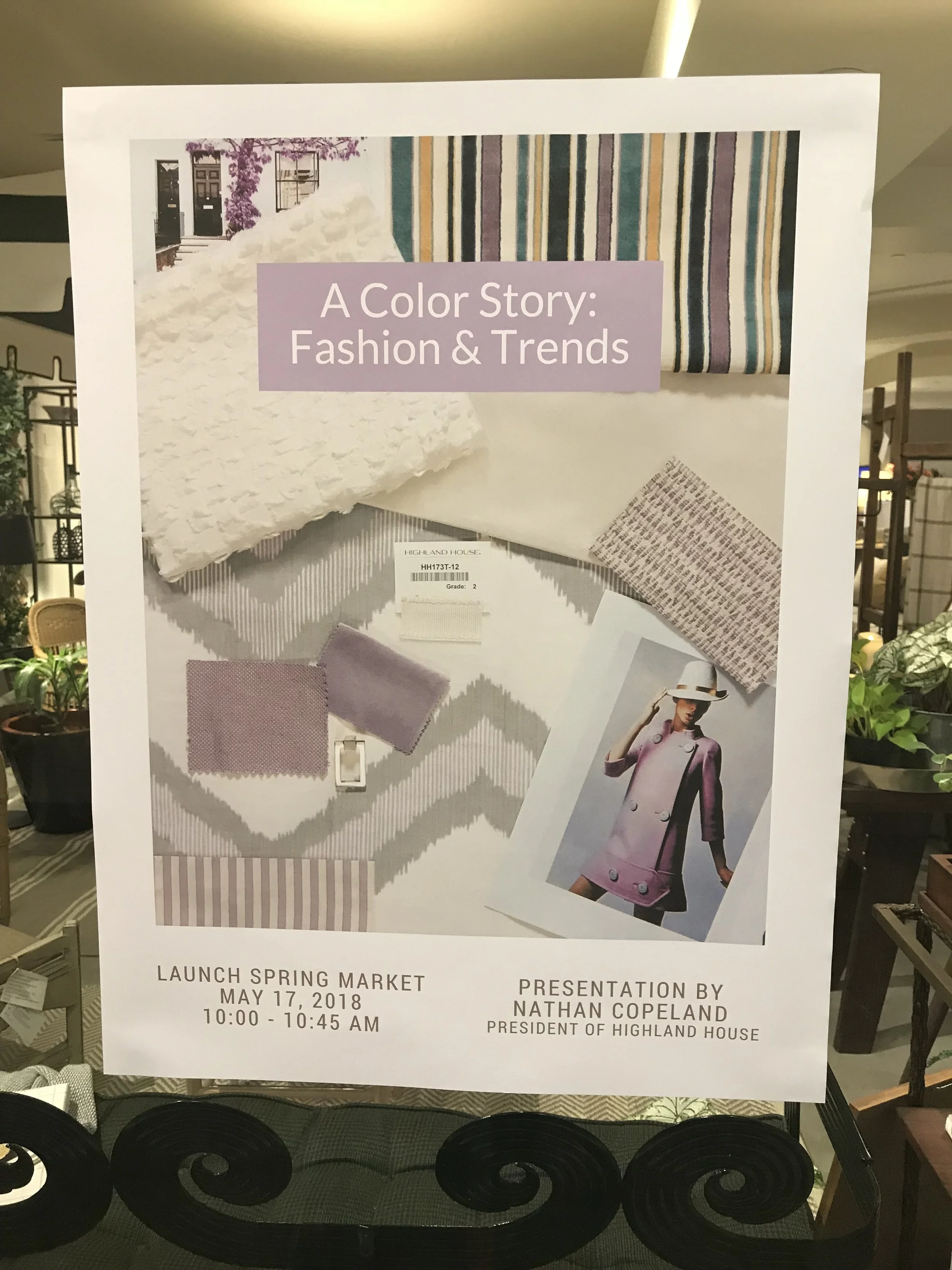 As a stager, it is important for me to be up on trends. After all, how would I be able to stage a home to look updated and fresh if all of my inventory is dated and old? Luckily, I find following trends quite delightful, and particularly enjoyed this presentation by Highland House at the Denver Launch Spring Market on Thursday. The whole presentation tied the trends in fashion with the colors and patterns of their spring line. It was fabulous!